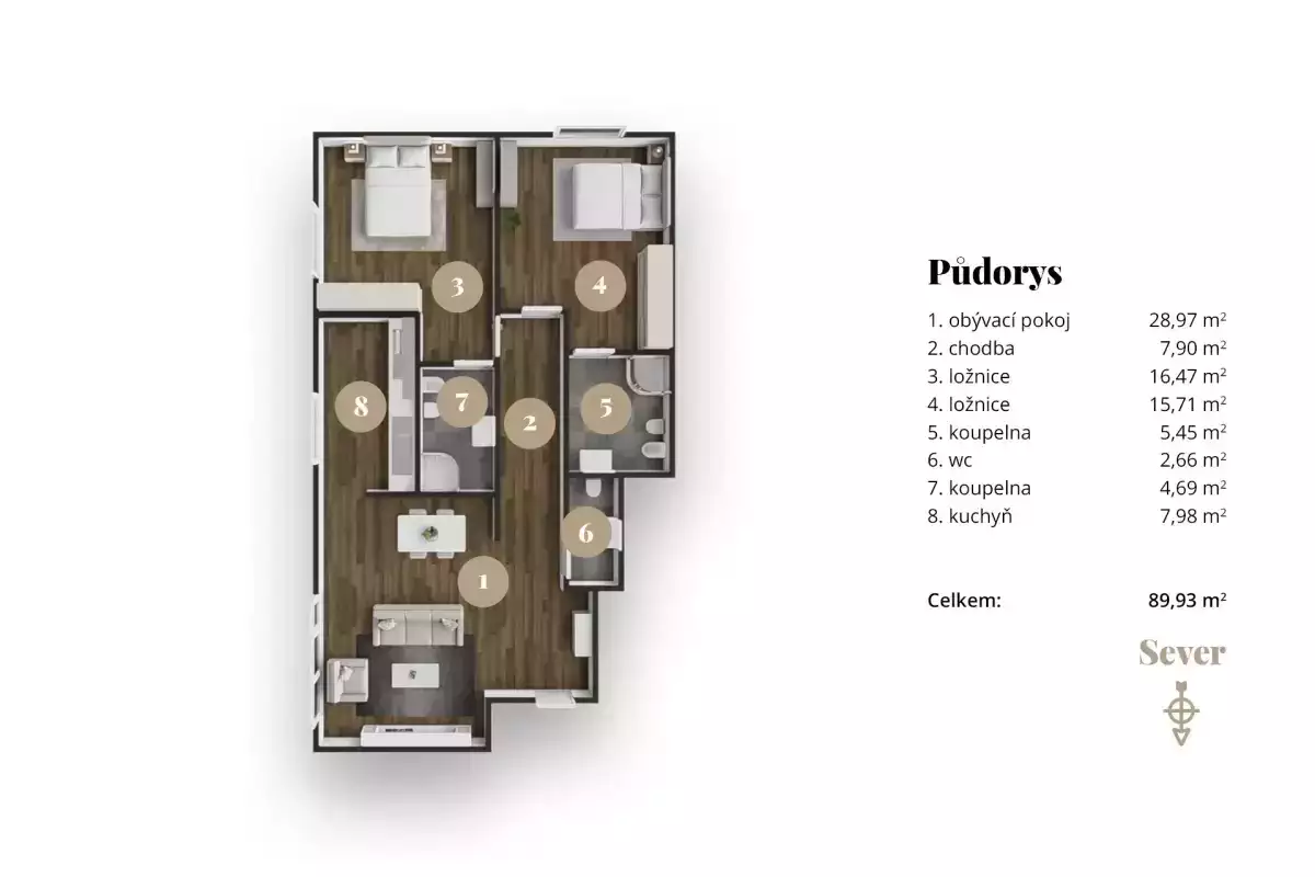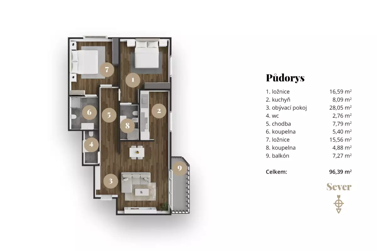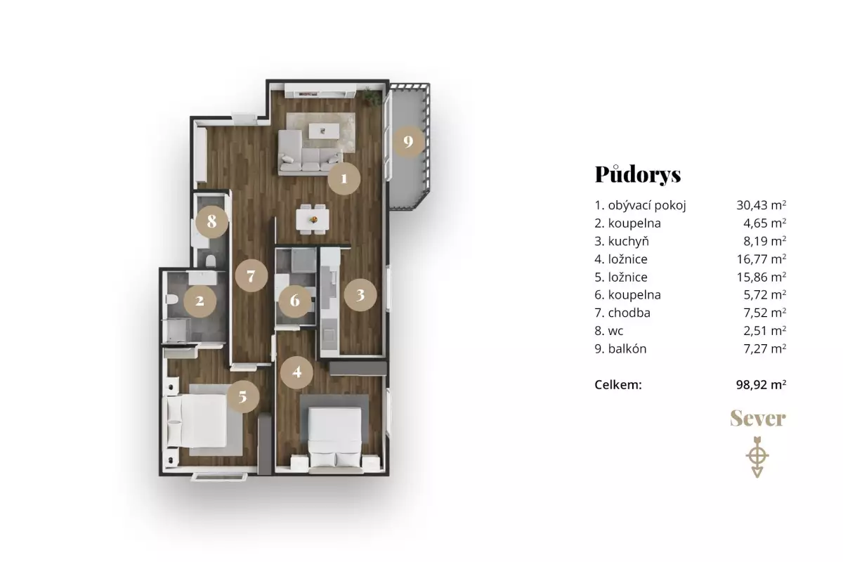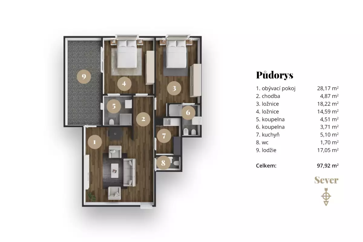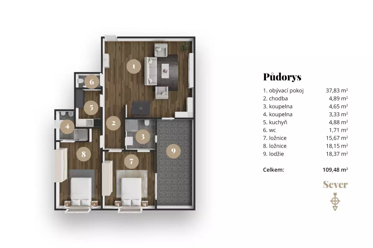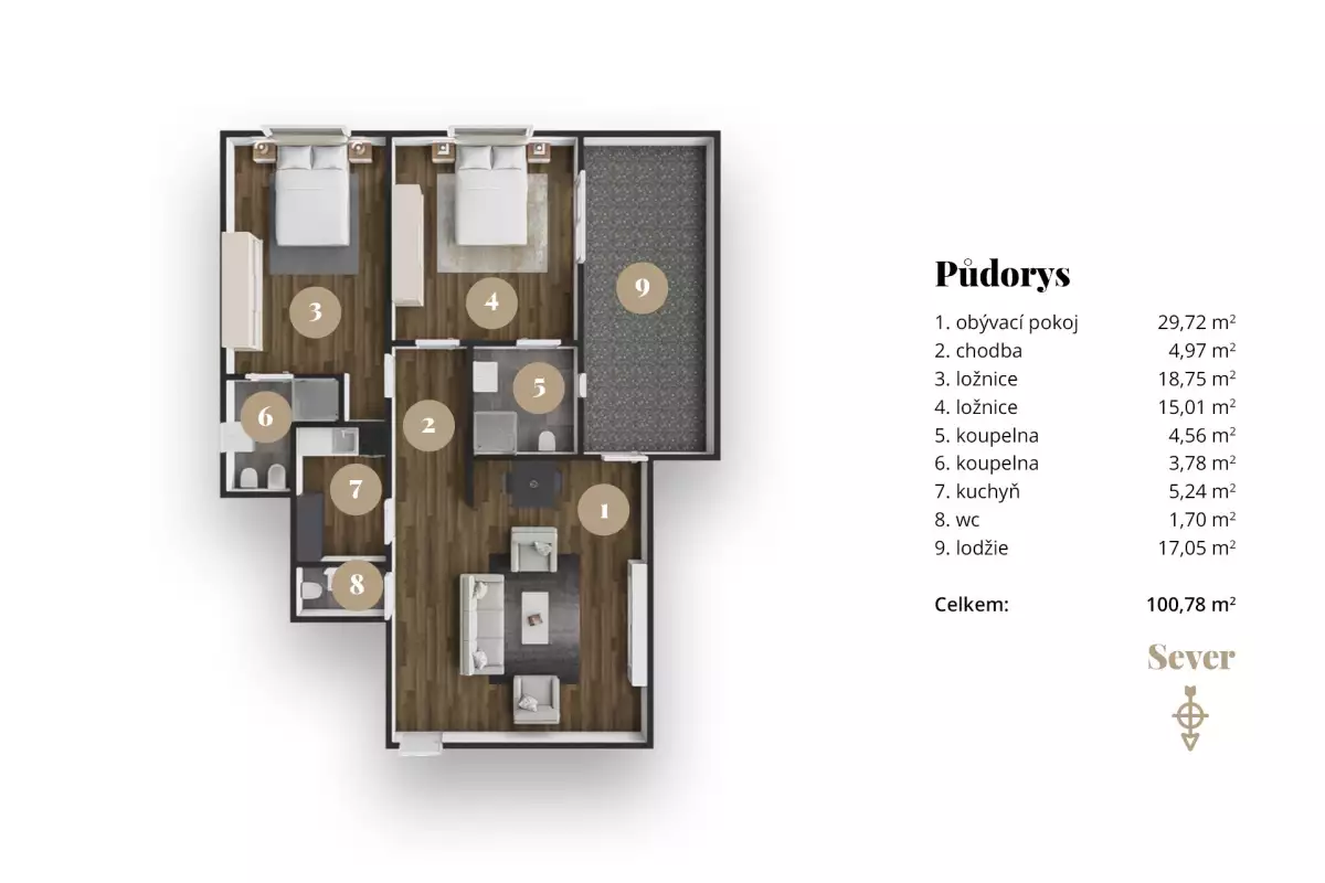 الطابق الثاني - الشقة رقم 108 ? 98,89 m² شقة 3 غرف + مطبخ + لوجيا 5 809 640 Kč Open