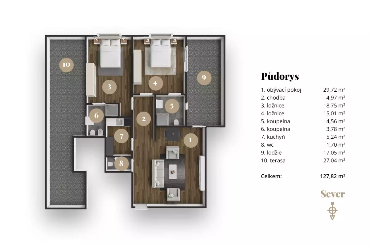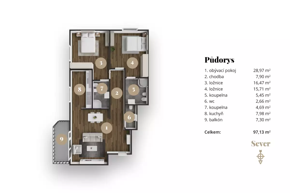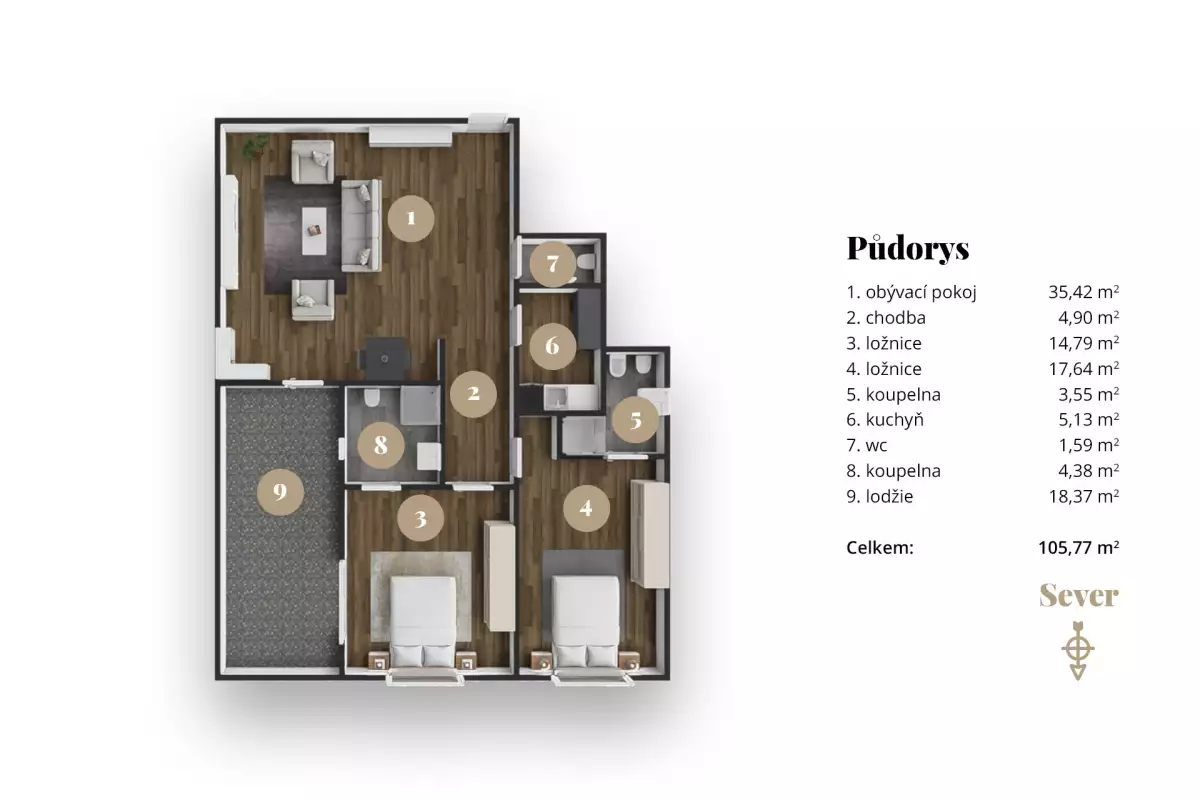 الطابق الثالث - الشقة رقم 206 ? 104 m² شقة 3 غرف + مطبخ + لوجيا 5 919 450 Kč Open