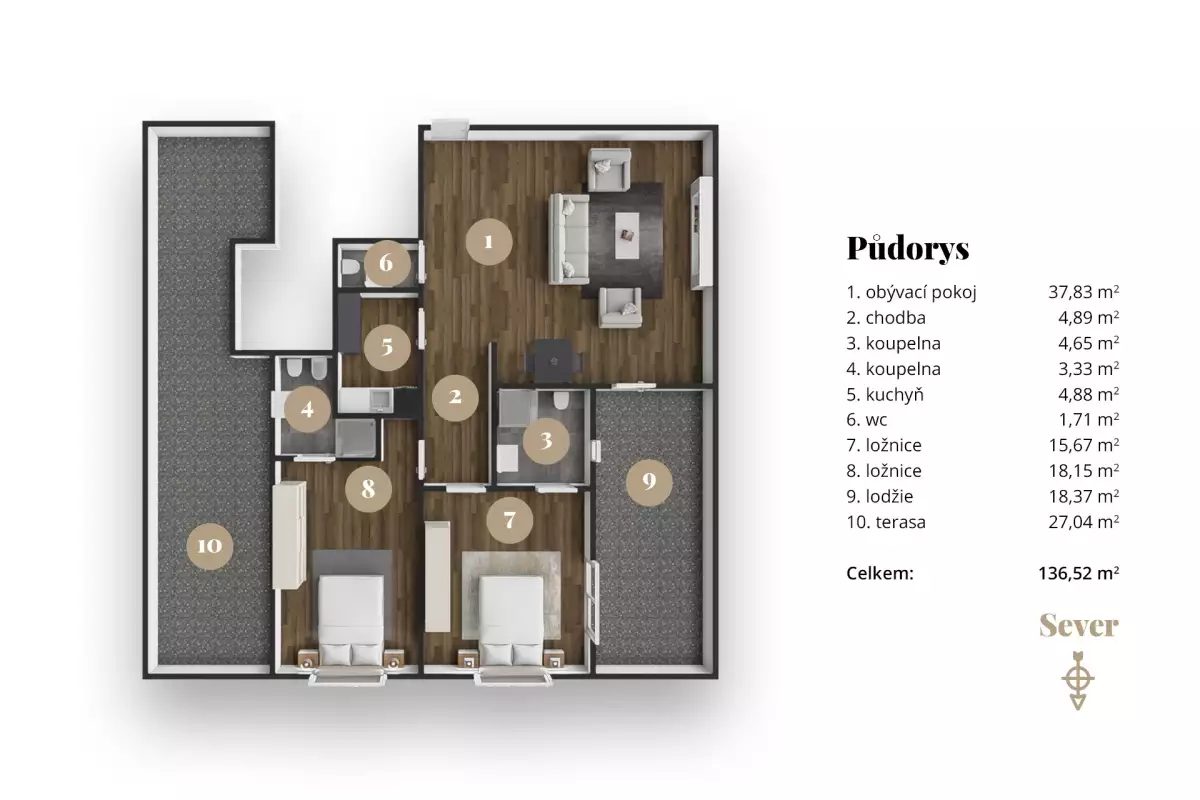 الطابق السادس - الشقة رقم 505 ? 137,72 m² شقة 3+غرف+مطبخ+تراس+لوجيا 7 475 975 Kč Open