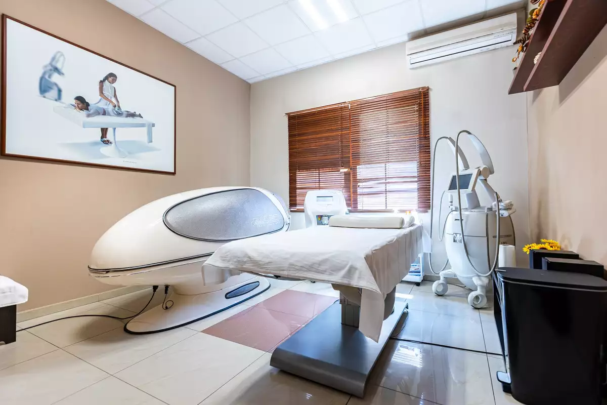 في الطابق الأرضي تتوفر مطعم، ومتجر، وصالون حلاقة، واستوديو لطب الجلدية التجميلي.