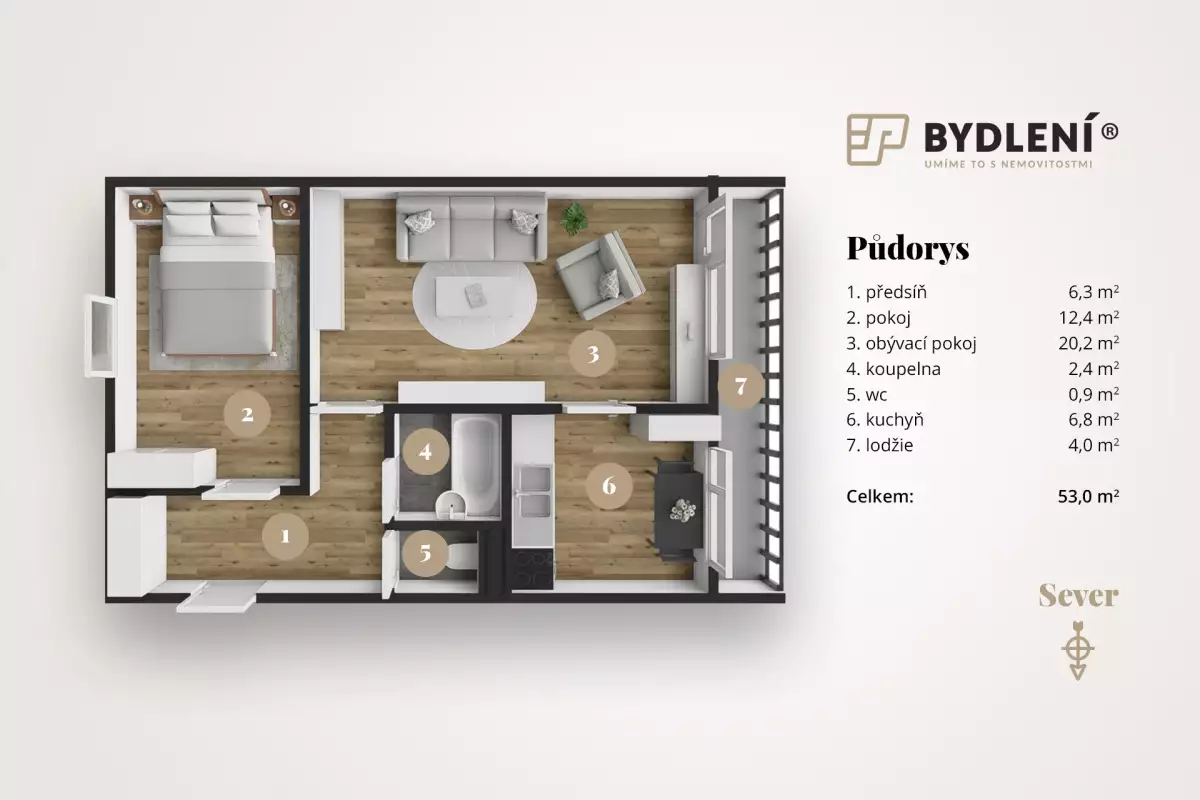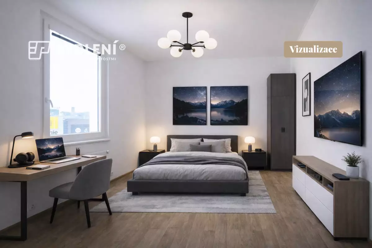 Dispozice bytu je navržena s důrazem na soukromí – jednotlivé pokoje jsou velmi dobře oddělené, stejně tak je oddělena koupelna od toalety, což zvyšuje komfort každodenního bydlení. Byt tak působí funkčně, přehledně a nabízí příjemné uspořádání prostoru.