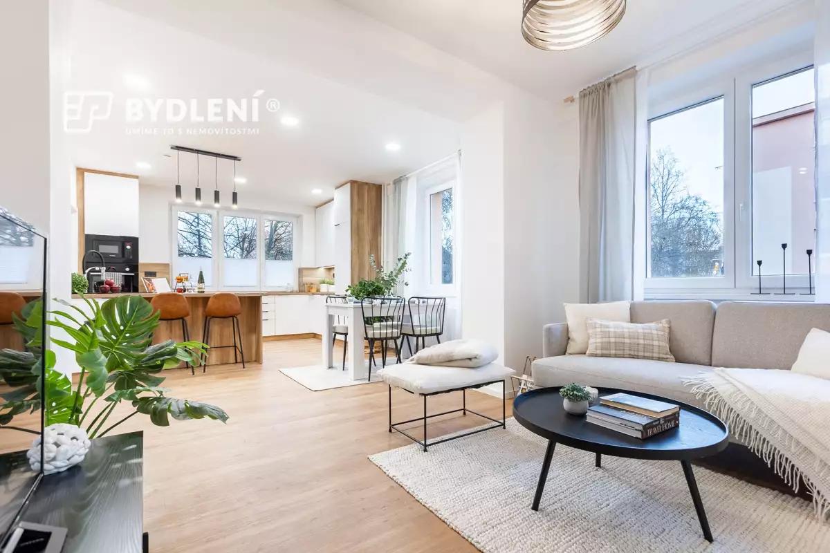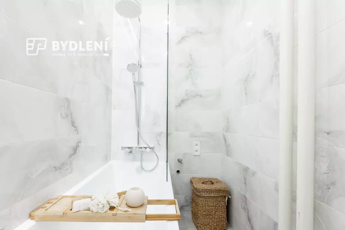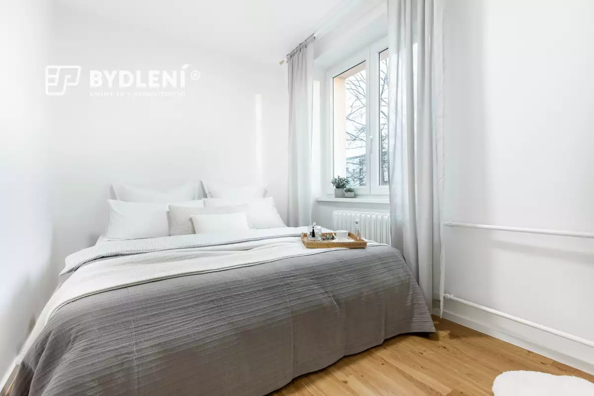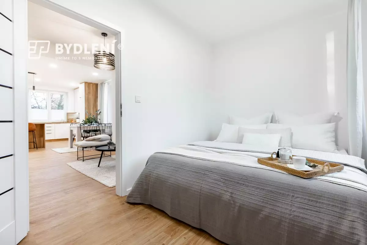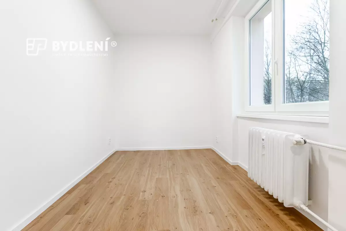Byt prošel kompletní a vkusnou rekonstrukcí. Obývací pokoj s kuchyňským koutem se spotřebiči Bosch působí světlým dojmem a nabízí příjemné společné zázemí. Také zděná koupelna je kompletně nová, se samostatnou toaletou. Menší pokoj je ideální jako dětský pokoj, pracovna nebo úložný prostor. Ložnice poskytne útulné a klidné místo pro odpočinek. K bytu náleží sklepní kóje (2 m²). Provozní náklady činí cca 3 390 Kč/měs. + elektřina od cca 800 Kč / měs.