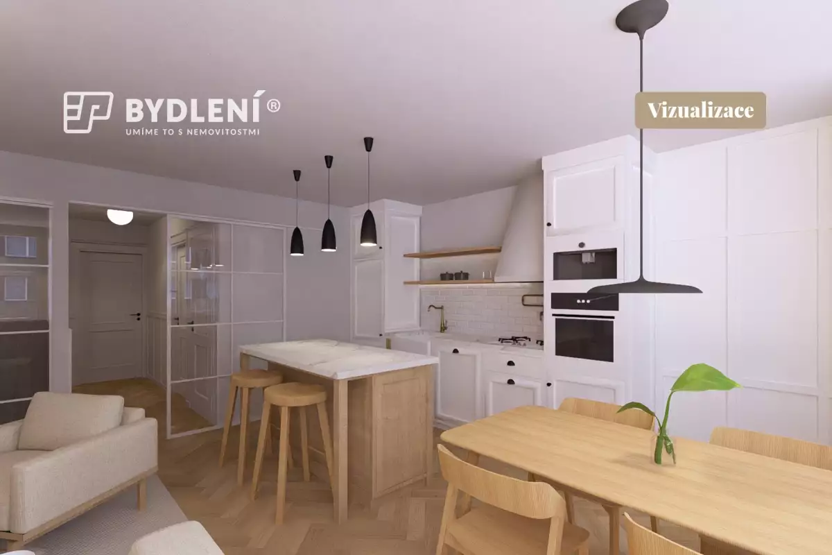 Byt se prodává bez kuchyňské linky a závěsných světel (zůstávají pouze bodová), avšak k dispozici je kompletní návrh nábytku na míru včetně vizualizace a rozkresu kuchyně. Na přání kupujícího může být kuchyně i nábytek zadán do výroby naším truhlářem – připraveno tak, aby na vás při předání čekalo vše hotové.