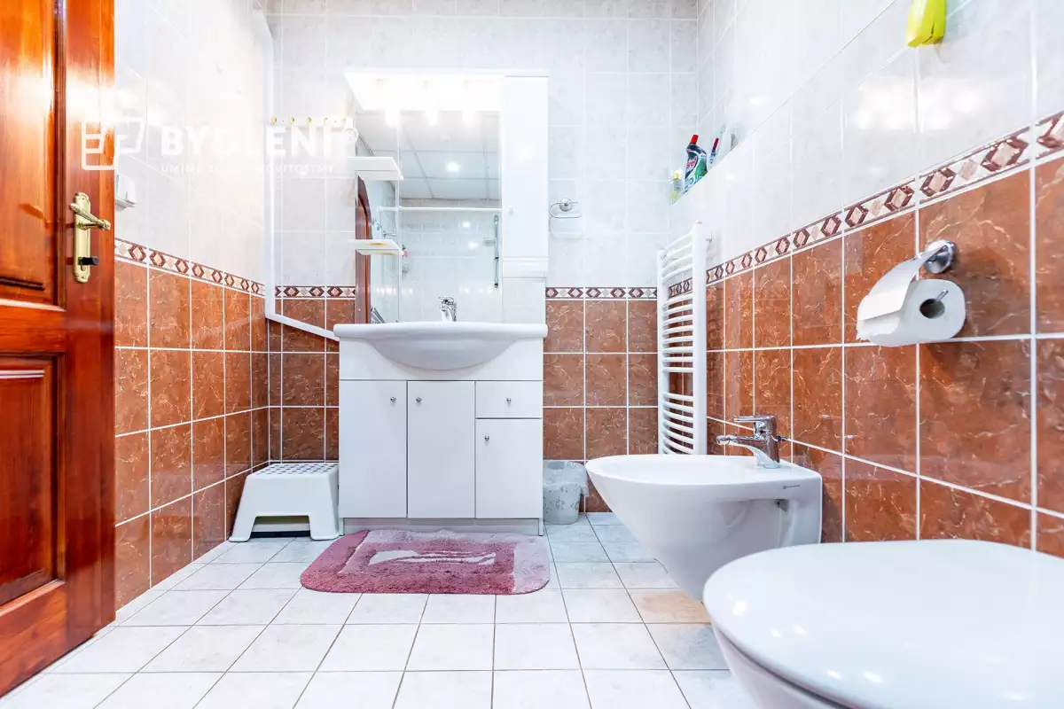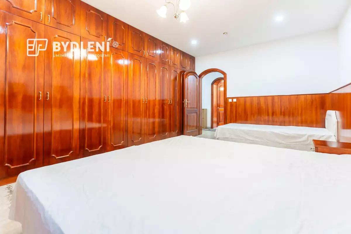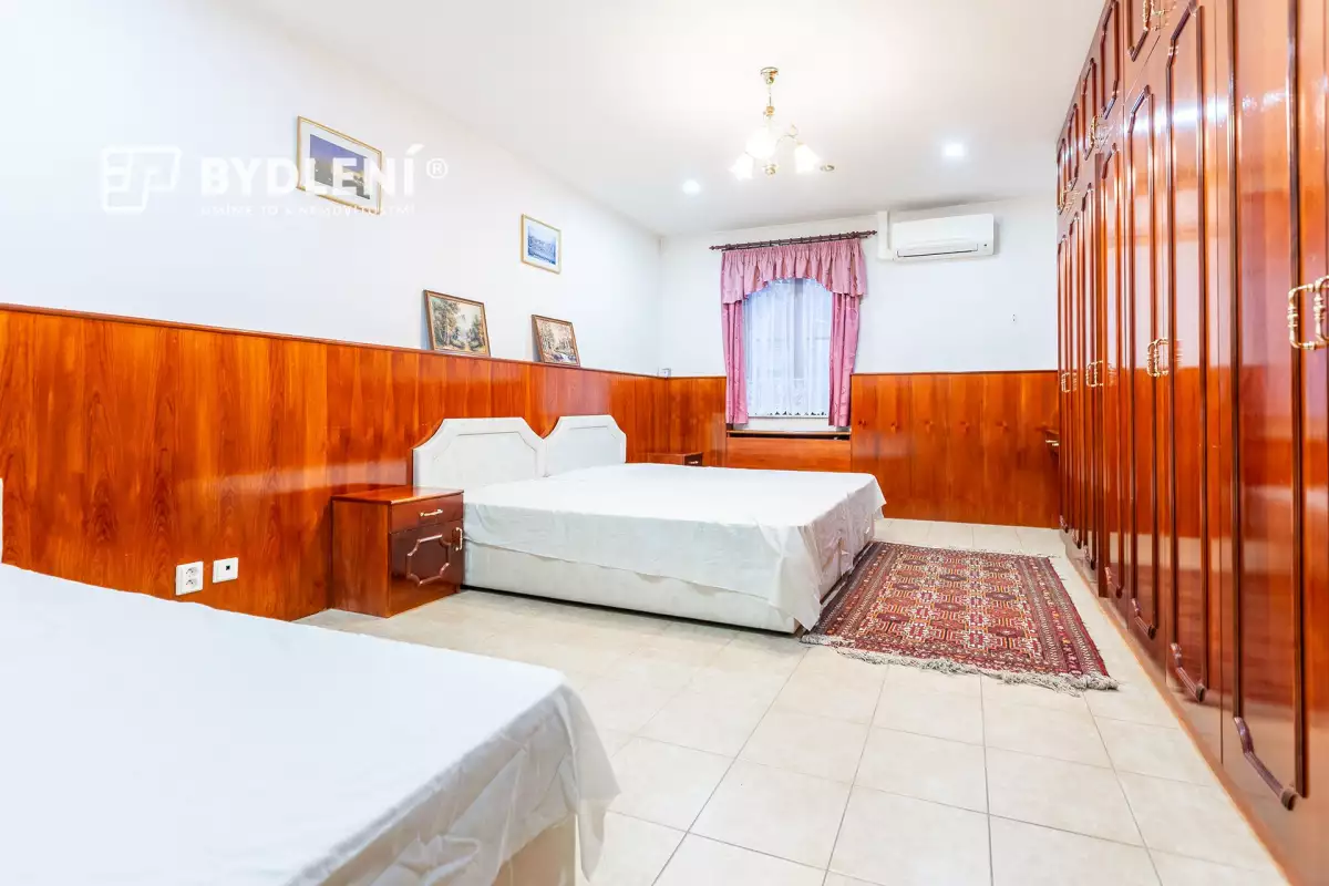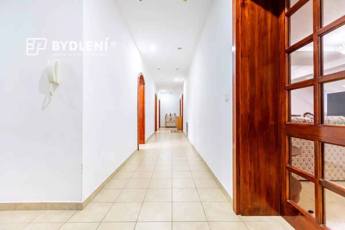 Zaujme svou dispozicí – velký obývací pokoj s jídelnou, samostatná kuchyně, tři ložnice, tři koupelny a prostorná vstupní hala vytvářejí komfortní a vzdušné bydlení vhodné pro rodinu i náročné zájemce. Každá místnost je vybavena klimatizací, parkování je možné přímo před domem.