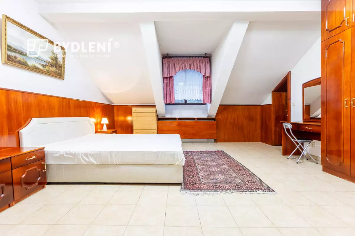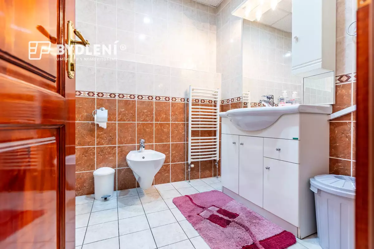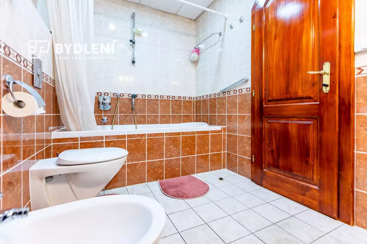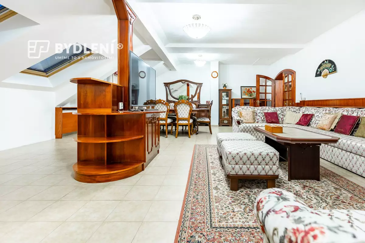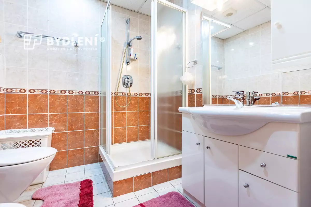 Zaujme svou dispozicí – velký obývací pokoj s jídelnou, samostatná kuchyně, tři ložnice, tři koupelny a prostorná vstupní hala vytvářejí komfortní a vzdušné bydlení vhodné pro rodinu i náročné zájemce. Každá místnost je vybavena klimatizací, parkování je možné přímo před domem.