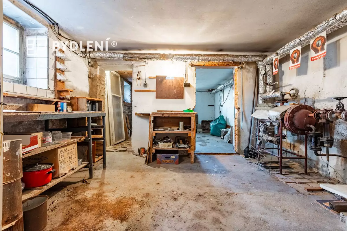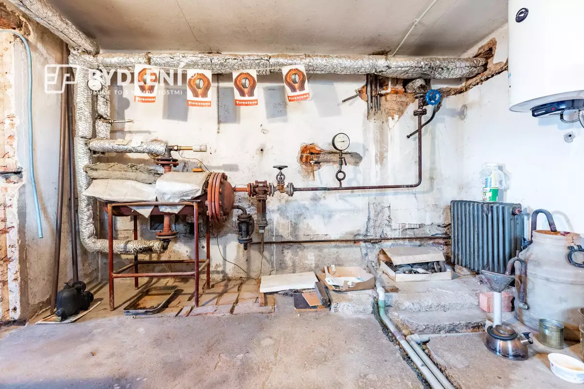 Z přední strany jsou již nová plastová okna a vstupní dveře, jinak je dům v původním stavu. Výhodou je vytápění parovodem, které zajišťuje velmi nízké provozní náklady s možností ohřevu vody. Aktuálně je v domě připojen bojler. K dispozici je také prostorný sklep a půda, které nabízejí další úložný nebo obytný potenciál.