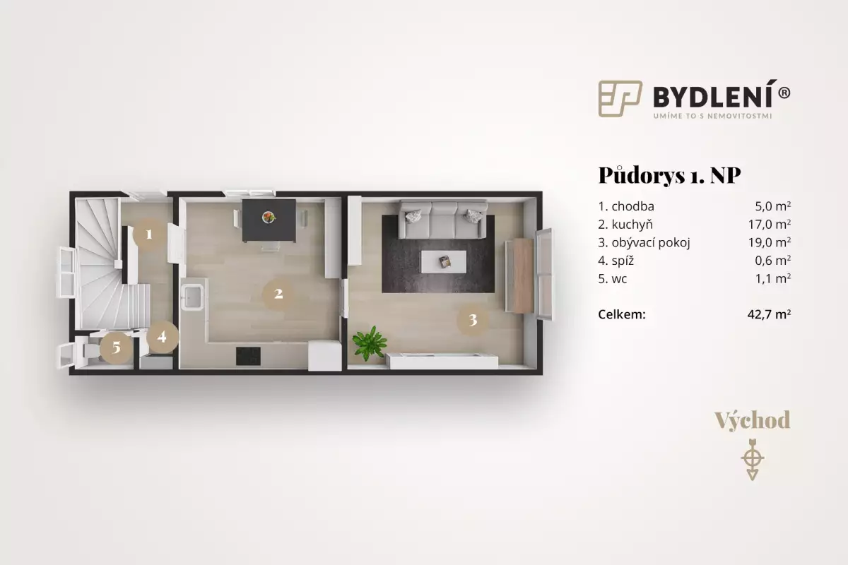 Uvedené výměry jsou orientační. Veškeré zveřejněné údaje obsažené v tomto inzerátu mají pouze informativní charakter a nejsou nabídkou ve smyslu § 1731 nebo § 1732 občanského zákoníku, ani se nejedná o veřejný příslib dle § 1733 občanského zákoníku.