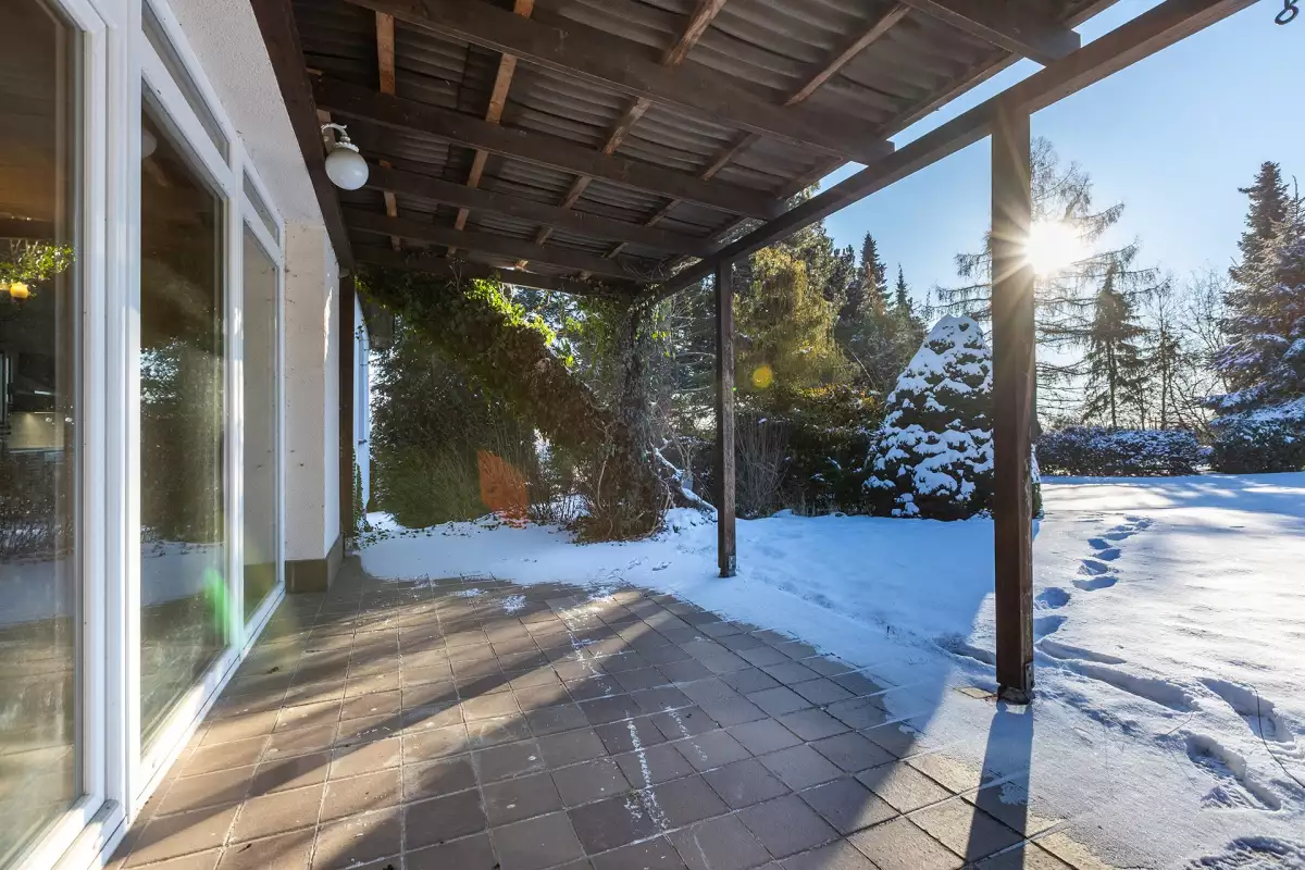 Velkou výhodou je závlahový systém napojený na vlastní studnu, díky kterému je údržba zahrady komfortní a zároveň ekonomicky efektivní. Díky umístění domu jako posledního ve slepé ulici zde není žádná další zástavba, která by narušovala výhled nebo pocit otevřeného prostoru. Zahrada tak nepůsobí uzavřeně, ale přirozeně navazuje na okolní krajinu.