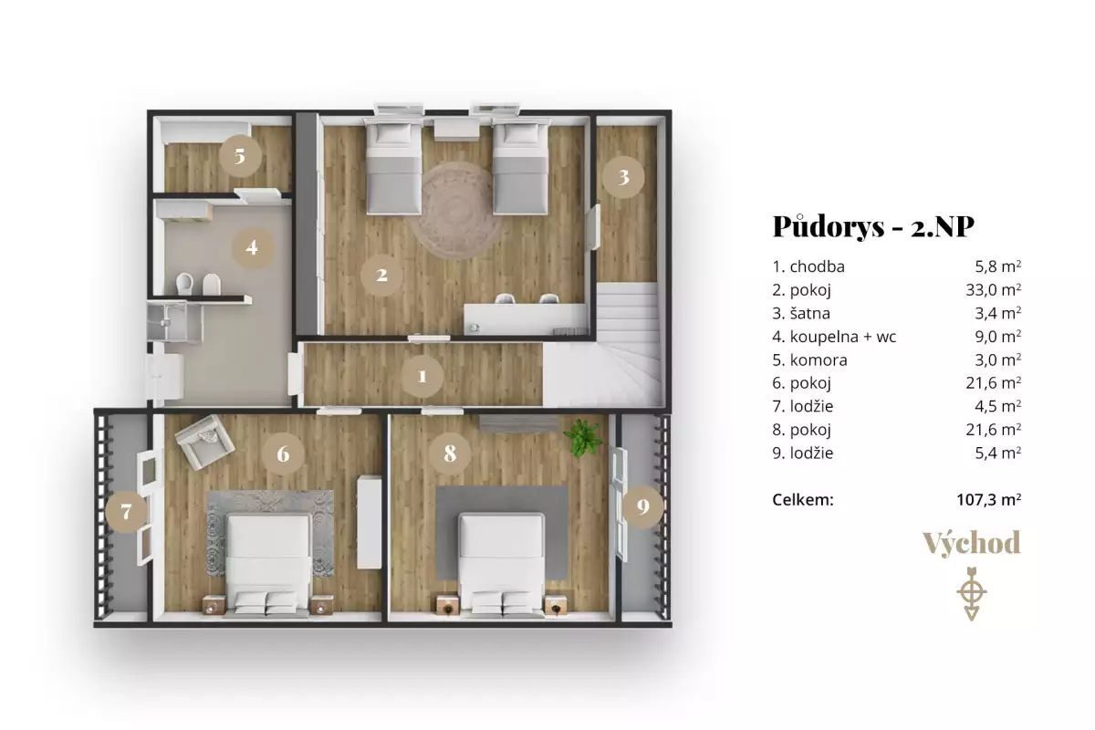 | 2.NP - 1. patro | 107,3 m² | |