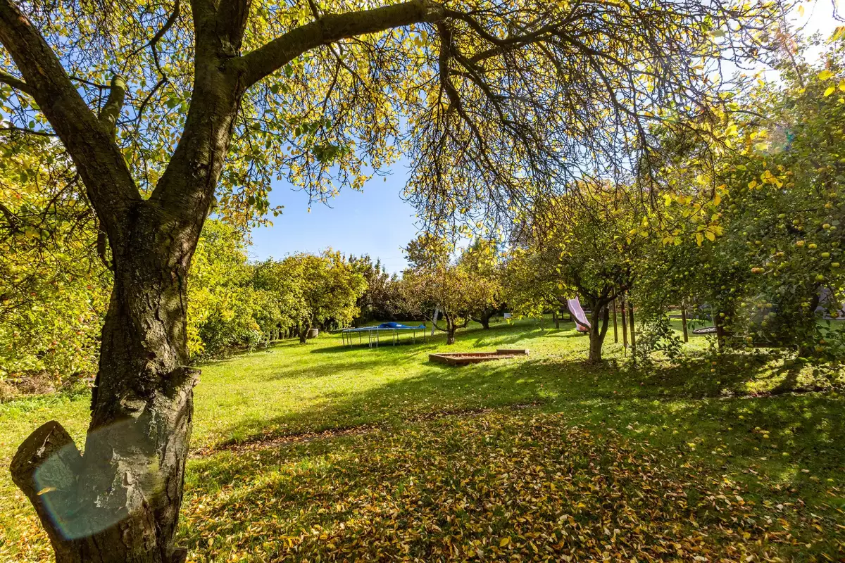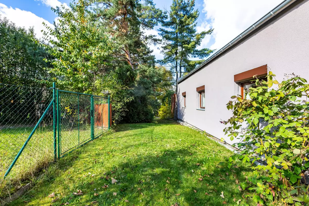 Při minimálním zásahu lze objekt rozdělit na dvě jednotky. Každá část pak získá vlastní obytný prostor i odpovídající podíl zahrady, což otevírá variantu vícegeneračního bydlení i čistě investičního využití.