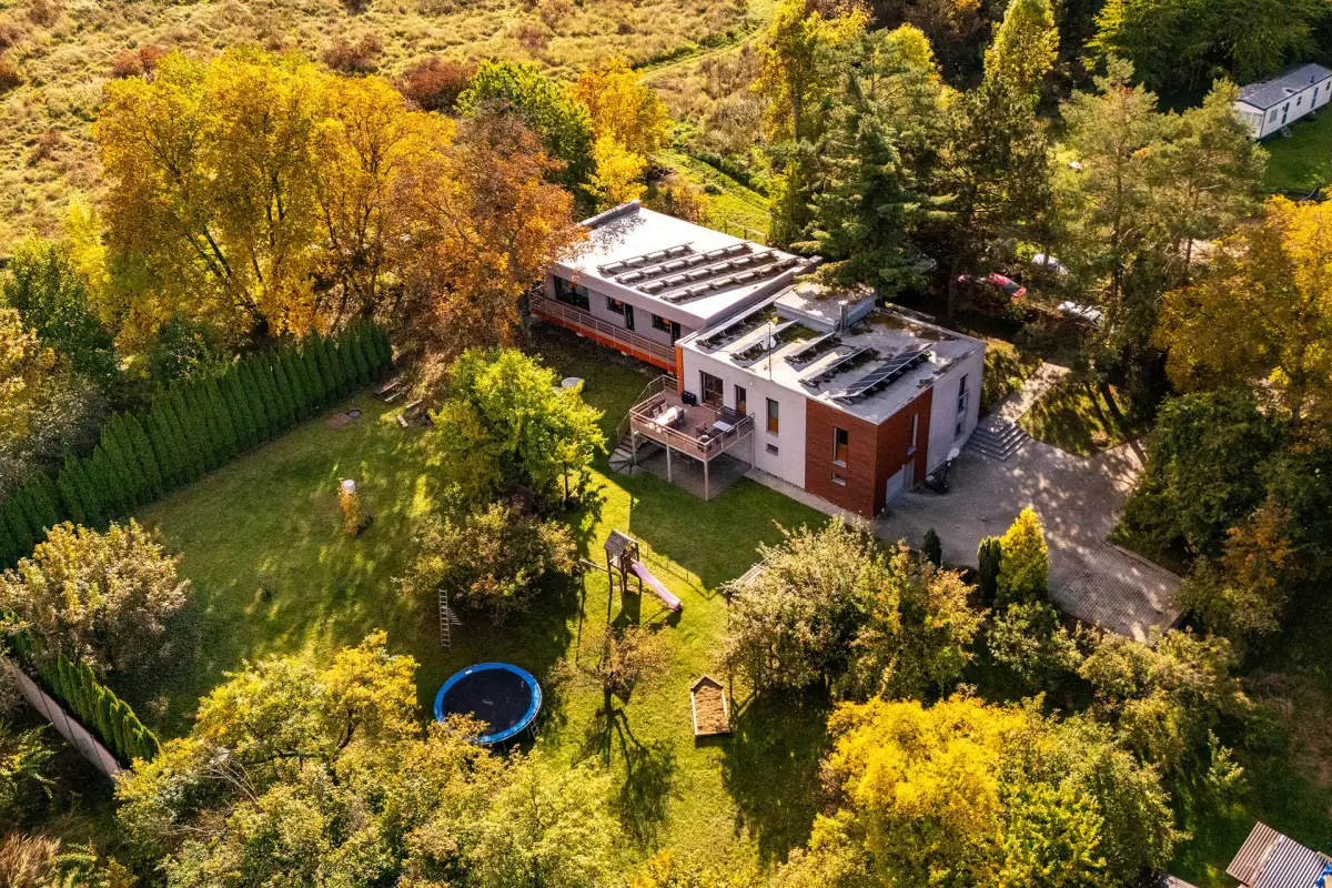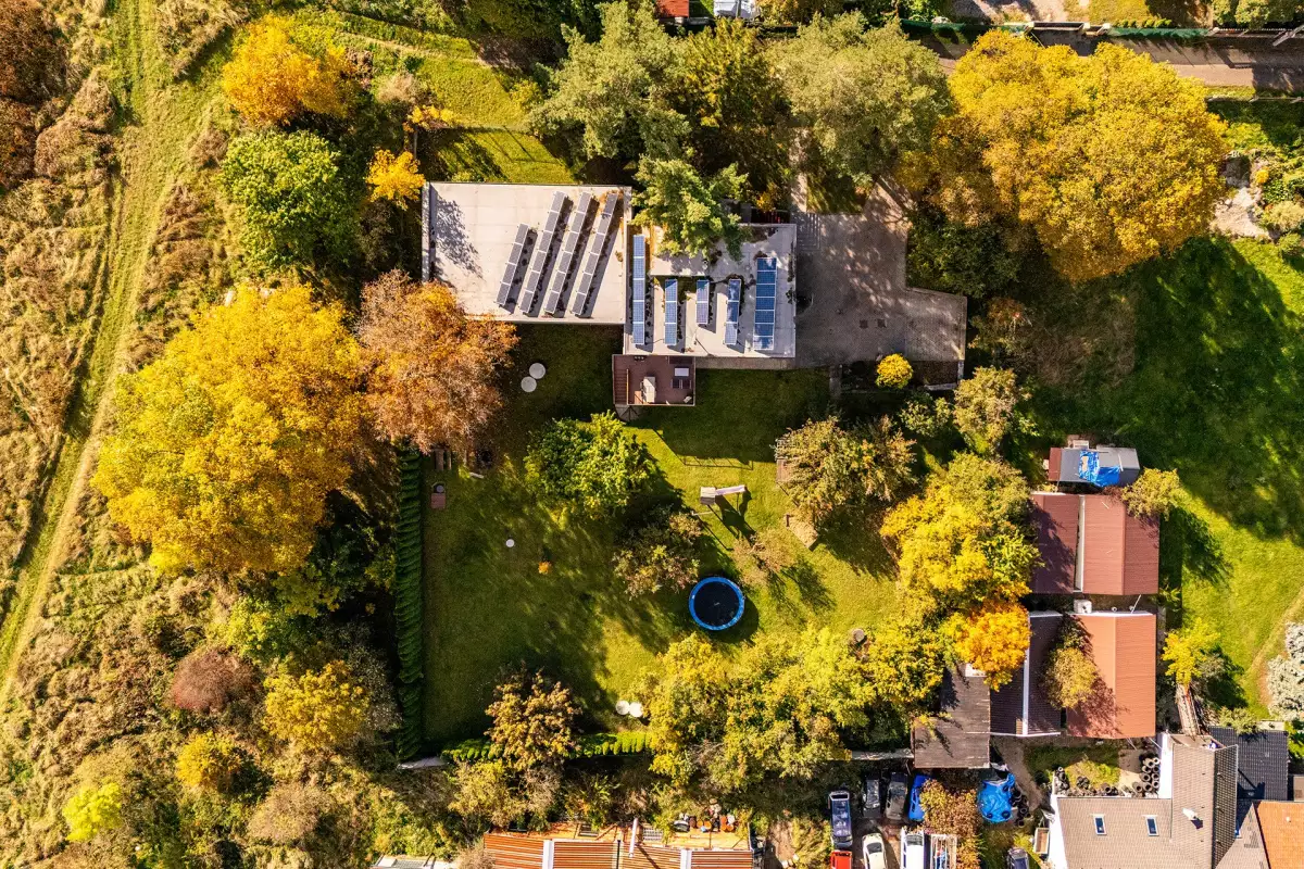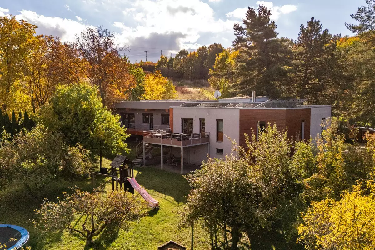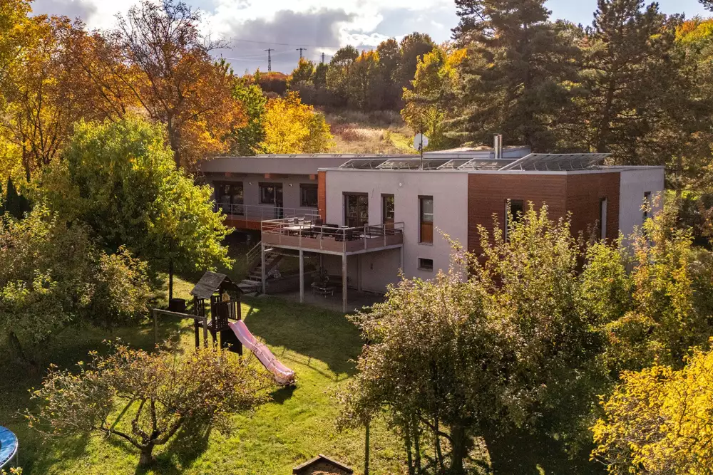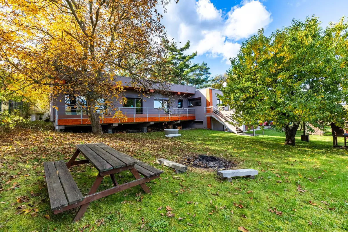 Dům, který nejde popsat jednou větou. Kombinuje původní stavbu s novou přístavbou, technické zázemí s reálnou soběstačností a zároveň nabízí scénář, který dnes dává ekonomický smysl – rozdělení na dvě plnohodnotné části.